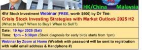 Drop by Dr Tee free 4hr webinar (learning at comfort of home with Zoom) to learn how to position in global giant stocks during global tariff crisis with 10 unique stock investing strategies, knowing What to Buy, When to Buy/Sell.